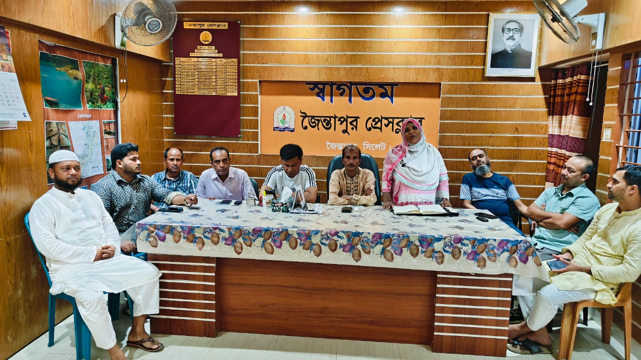 এতে সভাপতিত্ব করেন জৈন্তাপুর প্রেসক্লাব সভাপতি নূরুল ইসলাম।
