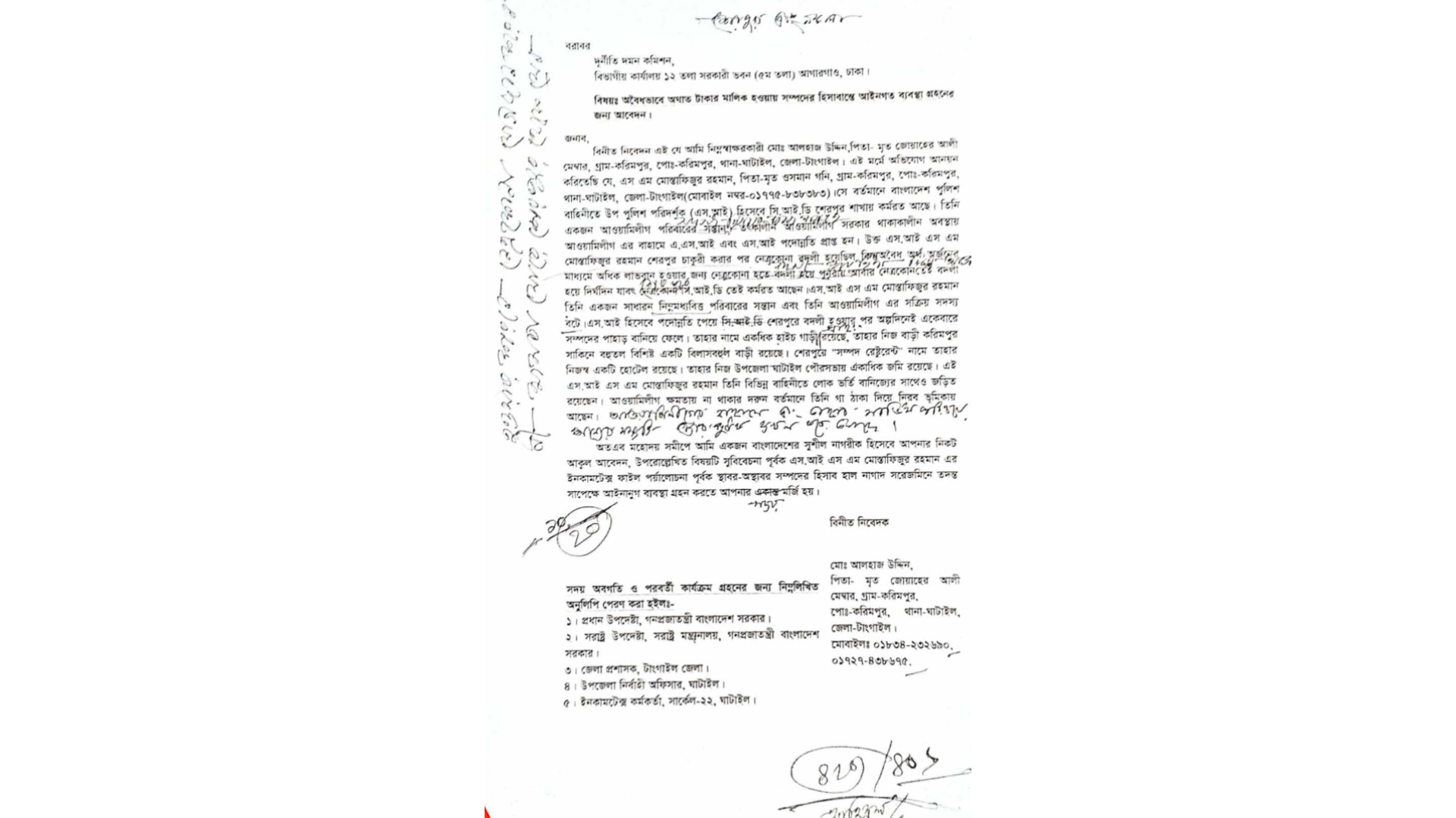এস.এম. মোস্তাফিজুর রহমান সাহেবের বিরুদ্ধে অঢেল অর্থ-সম্পদের মালিক হওয়ার অভিযোগ