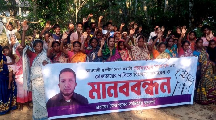 মানববন্ধনে অংশ নেওয়া এলাকাবাসীদের অভিযোগ, আওয়ামী লীগ সরকার ক্ষমতায় থাকাকালে তোফায়েল আহমদ দীর্ঘ সময় ধরে সাধারণ মানুষের উপর চাঁদাবাজি, হয়রানি ও নির্যাতন চালিয়েছেন। তারা দাবি করেন, স্থানীয় অনেক নারী-পুরুষ তার সন্ত্রাসী কর্মকাণ্ডের শিকার হয়েছেন।