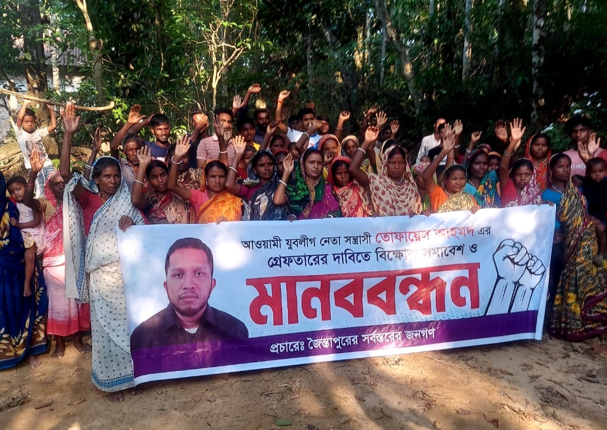 জৈন্তাপুরে মানববন্ধন: প্রবাসে থাকা যুবলীগ নেতার বিচারের দাবি