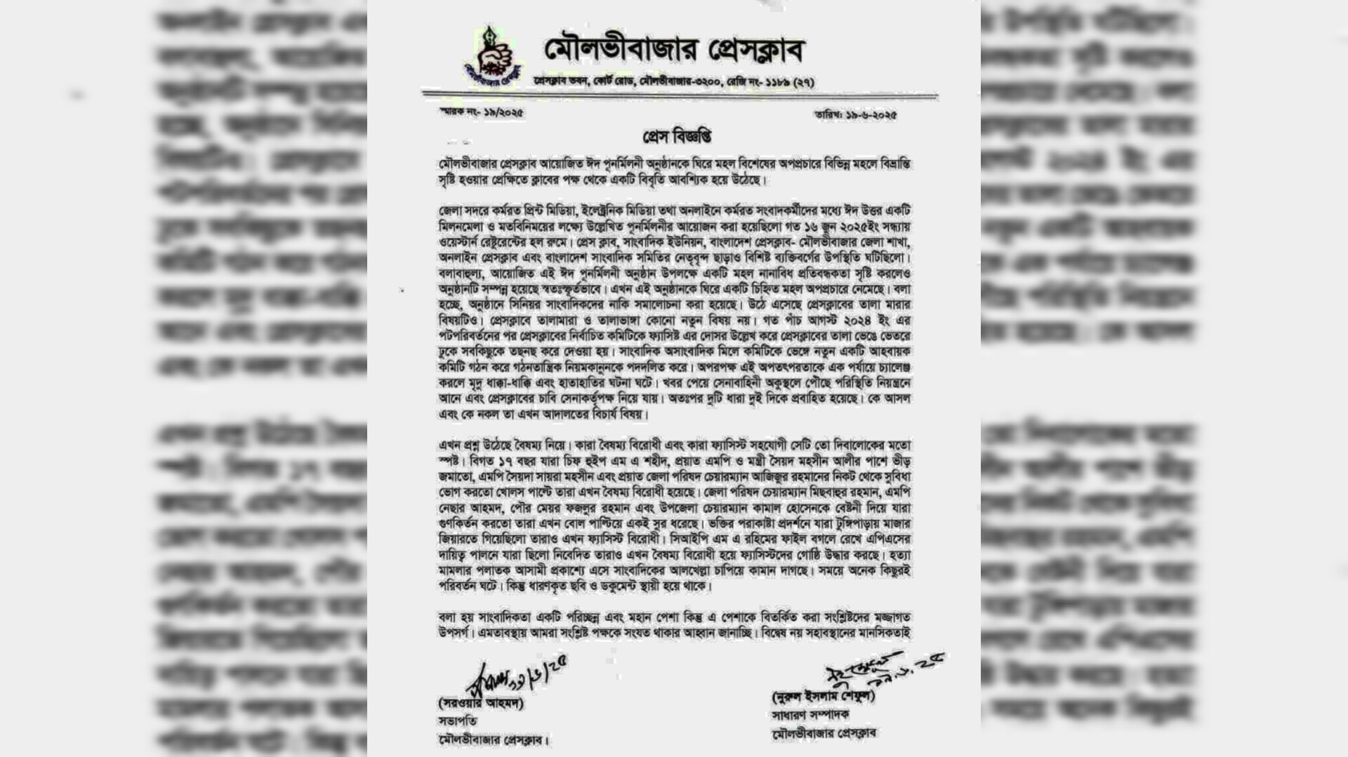 ঈদ পুনর্মিলনী নিয়ে বিভ্রান্তিকর তথ্য প্রচার: মৌলভীবাজার প্রেসক্লাবের ব্যাখ্যা