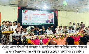 সিলেট মহানগর ৩৩ নং ওয়ার্ড বিএনপির সম্মেলন ও কাউন্সিল সফলভাবে সম্পন্ন হয়েছে। মঙ্গলবার (১৬ সেপ্টেম্বর) বিকেলে উৎসব মুখর পরিবেশে অনুষ্ঠিত এ সম্মেলনে সভাপতি পদে বিজয়ী হয়েছেন তাজুল ইসলাম তাজ। সাধারণ সম্পাদক হিসেবে নির্বাচিত হয়েছেন জাবেদ হক এবং সাংগঠনিক সম্পাদক নির্বাচিত হয়েছেন জসিম উদ্দিন।