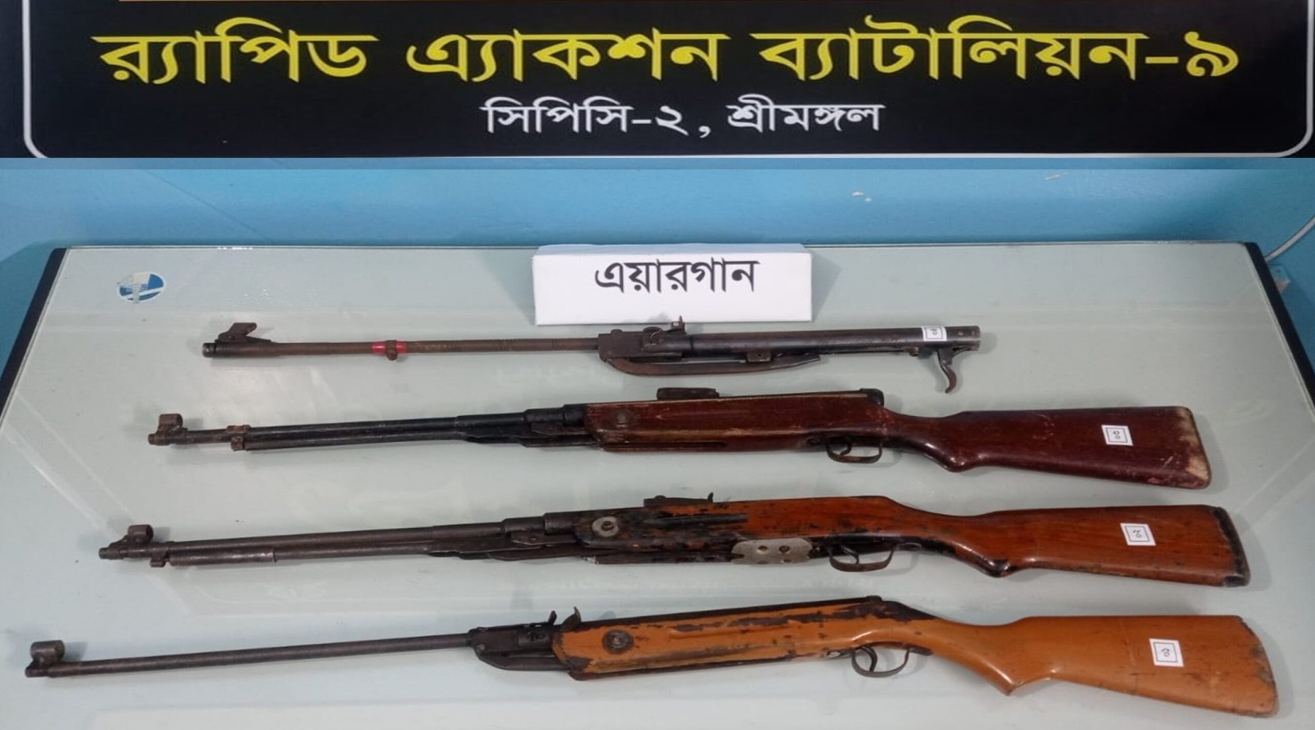 মৌলভীবাজারে র্যাব-৯ এর অভিযানে আরও ৯ টি এয়ারগান উদ্ধার