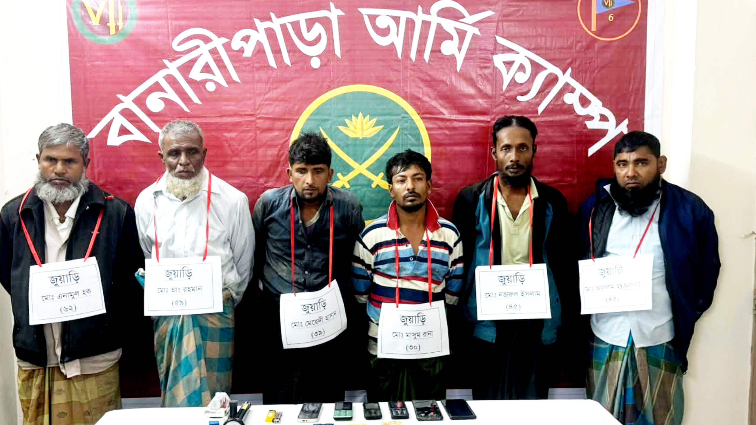 বানারীপাড়ায় ৬ জুয়ারী সেনাবাহিনীর হাতে আটক