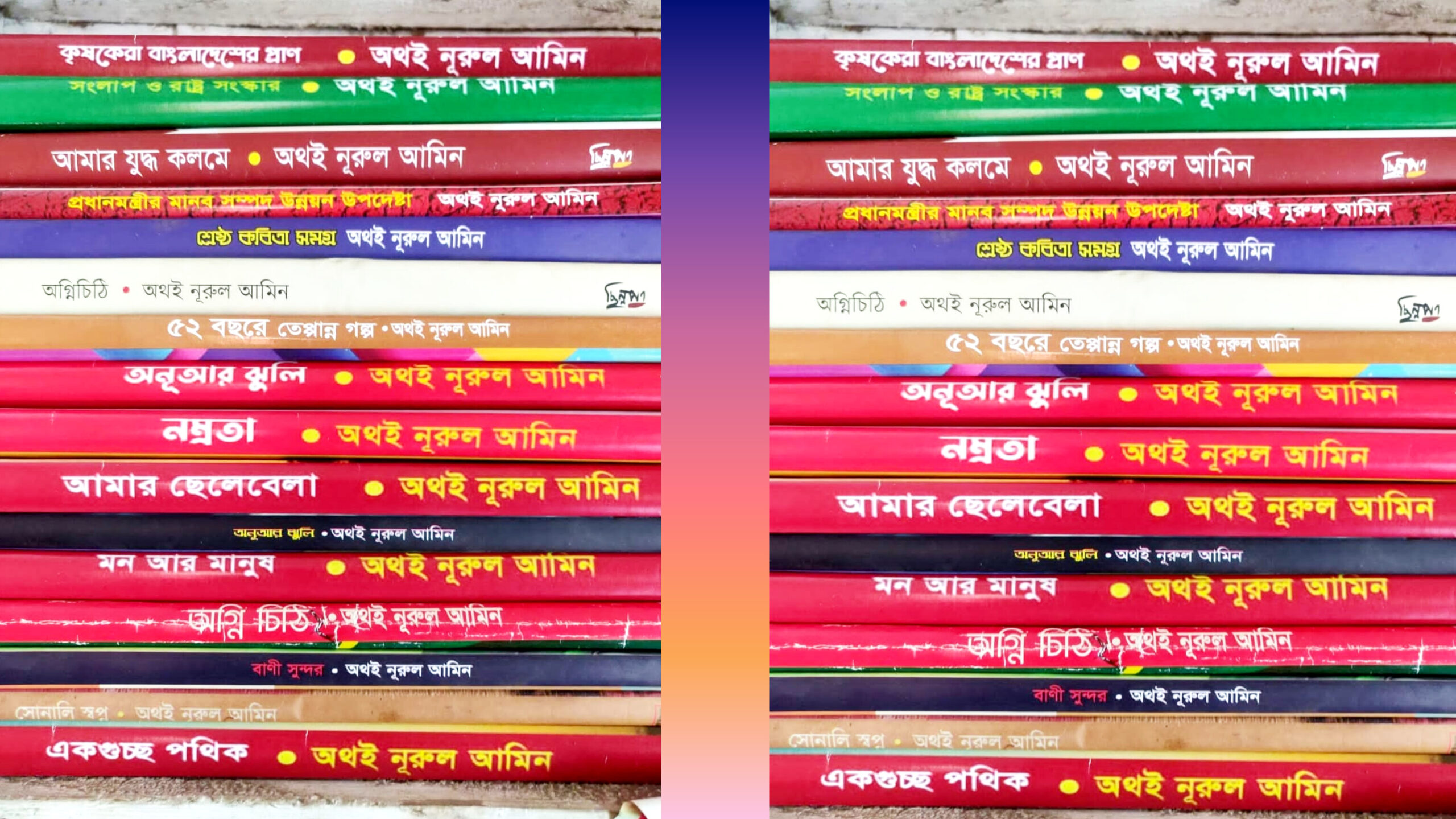 তিনি সারাদেশের বেসরকারি প্রায় আড়াইশর বেশি পাঠাগার, সামাজিক ও সাহিত্য সংগঠন গুলোতে ২০২৩. ২০২৪ ও ২০২৫ সাল পর্যন্ত প্রায় আট লক্ষ টাকার সৌজন্য এবং উপহার হিসেবে দিয়েছেন মর্মে তথ্য পাওয়া যায়। অথই নূরুল আমিন স্যারের বইয়ের নাম গুলো নিম্নে তুলে ধরা হলো।