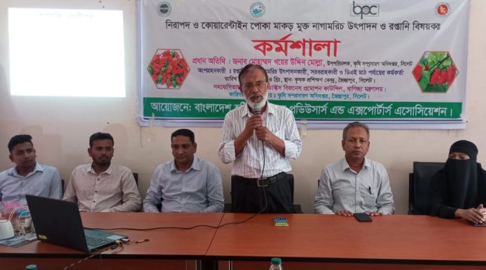 জৈন্তাপুর প্রতিনিধি: জৈন্তাপুর উপজেলায় নিরাপদ ও কোয়ারেন্টাইন পোকা মাকড় মুক্ত নাগামরিচের উৎপাদন ও রপ্তানি বিষয়ক এক কর্মশালা অনুষ্ঠিত হয়েছে। বাংলাদেশ হর্টিকালচারাল প্রডিউসার্স এন্ড এক্সপোর্টার্স এসোসিয়েশন আয়োজিত ২৫ জুন সোমবার দিনব্যাপী