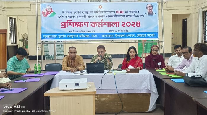 ডেস্ক নিউজ: জৈন্তাপুর উপজেলা দুর্যােগ ব্যবস্থাপনা কমিটির সদস্যদের দক্ষতা উন্নয়ন ও দুর্যোগ ব্যবস্থাপনায় জরুরী সাড়াদান পদ্ধতি শক্তিশালীকরণ বিষয়ে এক প্রশিক্ষণ কর্মশালা অনুষ্ঠিত হয়েছে। (শুক্রবার ২৮ জুন) বিকেলে উপজেলা পরিষদ মিলনায়তনে